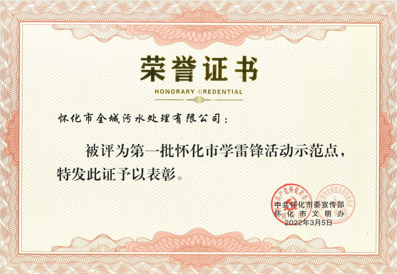2022年3月被中共怀化市委宣传部评为怀化市第一批“学雷锋活动示范点”荣誉称号